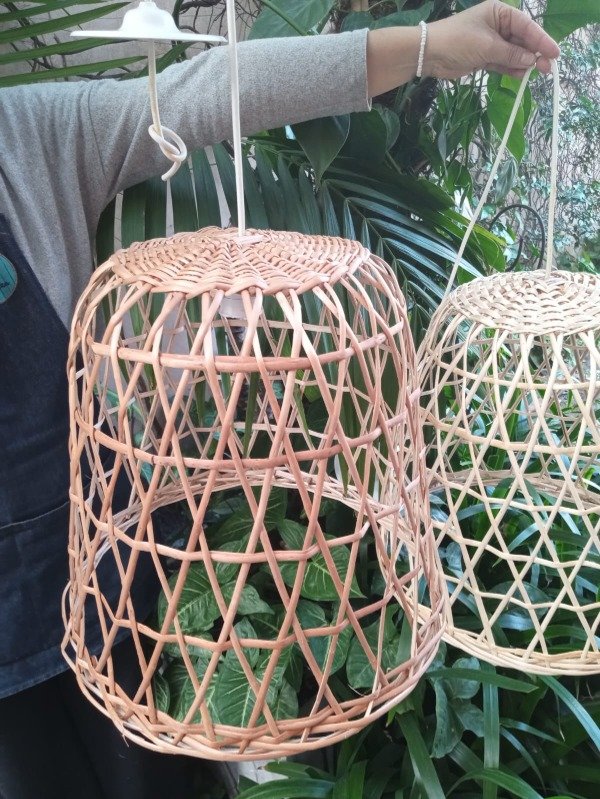 Lámpara Colgante de Mimbre Tejido Cruzado Jaula